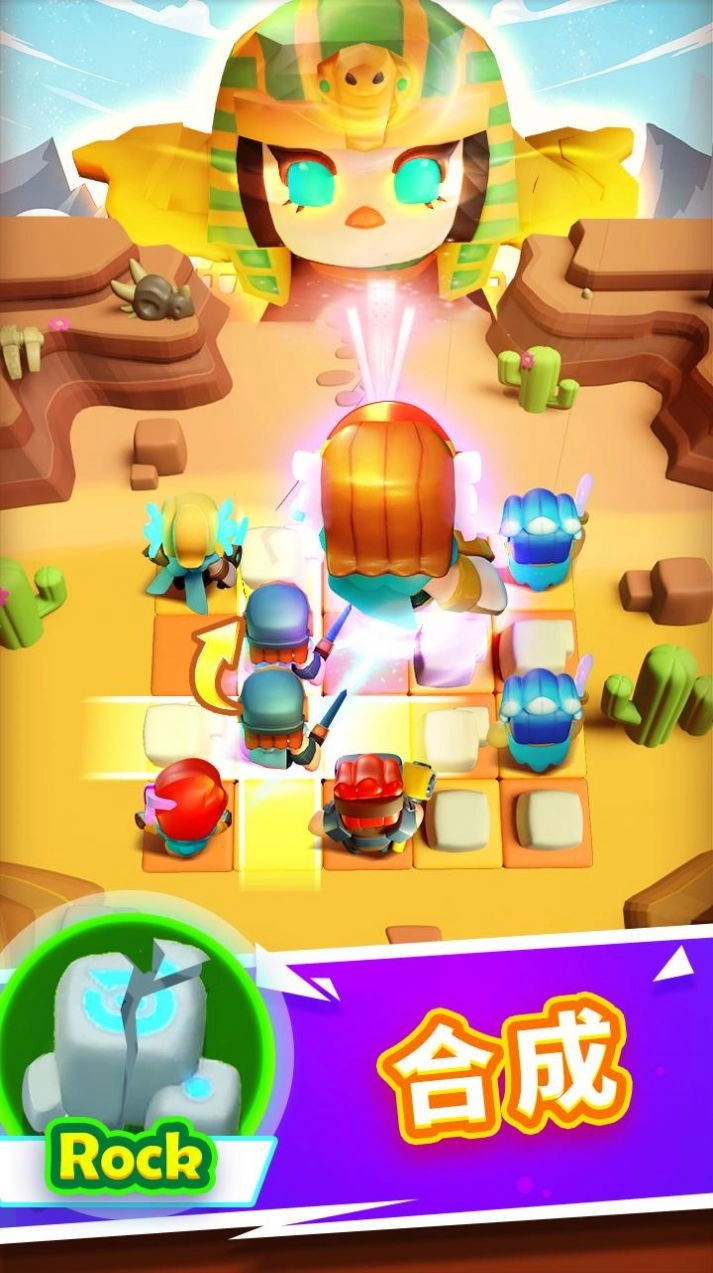 2、以休闲方式开启冒险,在这个肉鸽谜题中通过合成,来升级你的军团与王国。
