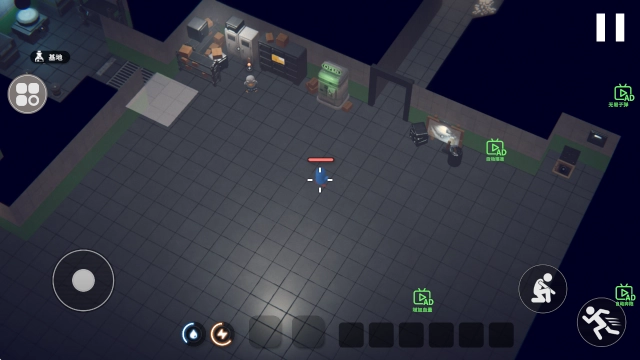 1、进入游戏后,可通过左侧摇杆操控移动,右侧则能实现蹲下与加速操作。