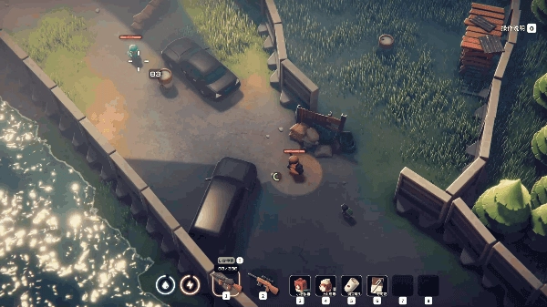 远程诱引:朝着暴走拾荒者开一枪,随即迅速翻滚以躲开它的冲锋。