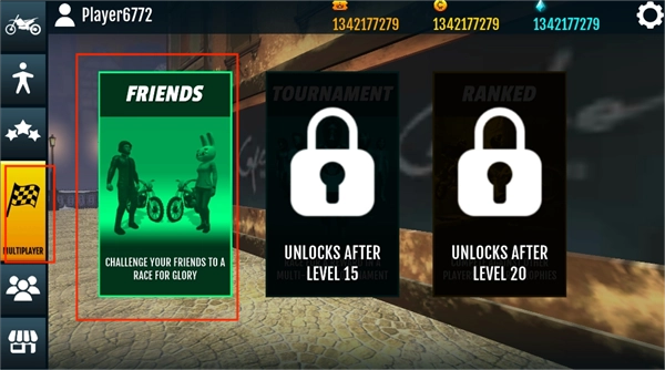 在游戏主页的左侧可以添加好友与其进行竞速比赛