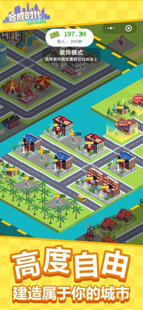 游戏采用“合成+城市建设”的核心设计理念,玩家能够通过合成不同等级的建筑,自主规划并打造属于自己的城市。