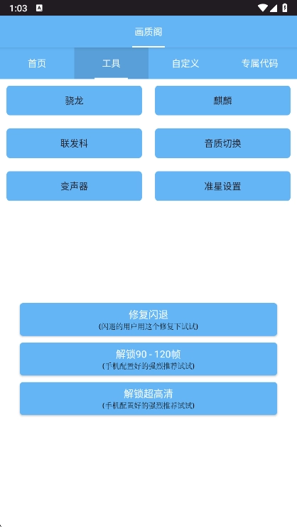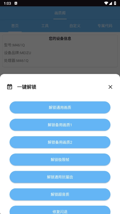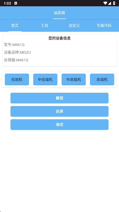 在这个平台完成画质阁的安装并启动后,进入主界面时系统会自动对您的设备型号展开检测。