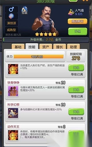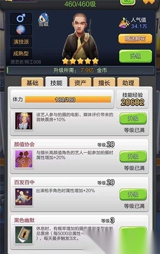 系统支持艺人在首映环节触发的专属技能增益、艺人凭借票房表现激活的技能加成,以及角色基于自身专长带来的技能强化等多种增益形式。