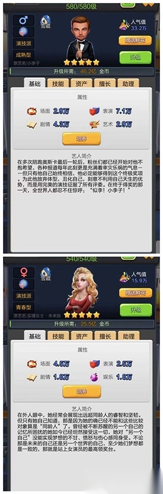 在游戏里能够对艺人进行等级培养,随着艺人等级的逐步提升,他们为公司带来的收益也会相应增加。