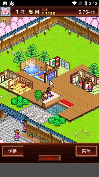 有一款由开罗社打造的像素风经营模拟游戏,玩家将化身温泉旅馆的主理人,通过灵活规划各类设施、精进服务水准、招揽不同类型的顾客,致力于把旅馆打造成在全国都颇具名气的温泉佳地。游戏里有小卖部、食堂、游戏室、按摩房、茶道室等四十多种设施可供玩家自由安排,并且需要借助“契合度辞典”来调整布局以达到更好的效果,比如在温泉附近摆放自动贩卖机就能让人气有所上升。这些设施都具备人气、收费、景色、功效、契合度等属性,玩家可以利用相应道具来强化它们,像使用“提升人气的种子”能增加前来的客流量,“舒心的种子”则可以让客房的景色更宜人。