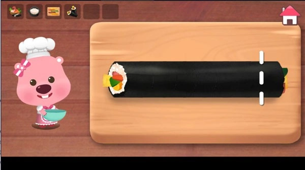 选择“制作寿司”的功能入口,进入模拟烹饪空间,依次选取制作过程中需要用到的各类食材