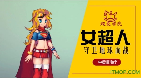 女超人:为守护地球免遭破坏,为捍卫爱与和平的美好,她以女超人之名投身战斗。在超能学院里,女超人担任啦啦队长,定位中后排治疗,兼具群体治疗能力与强化男性英雄攻击的效果。