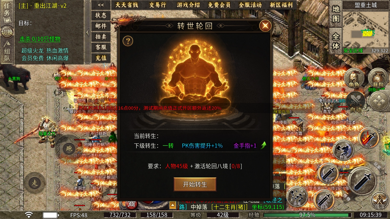 轮回转生机制:当角色等级达到45级且解锁轮回八境后,即可开启转生流程。转生不仅能增强角色在PK对战中的伤害输出,还可获取金手指点数,凭借这些点数能在作弊仙人处解锁强力特殊能力。