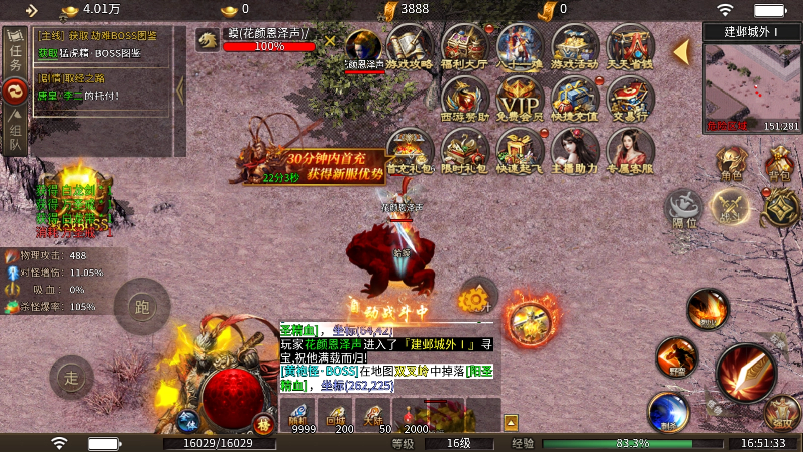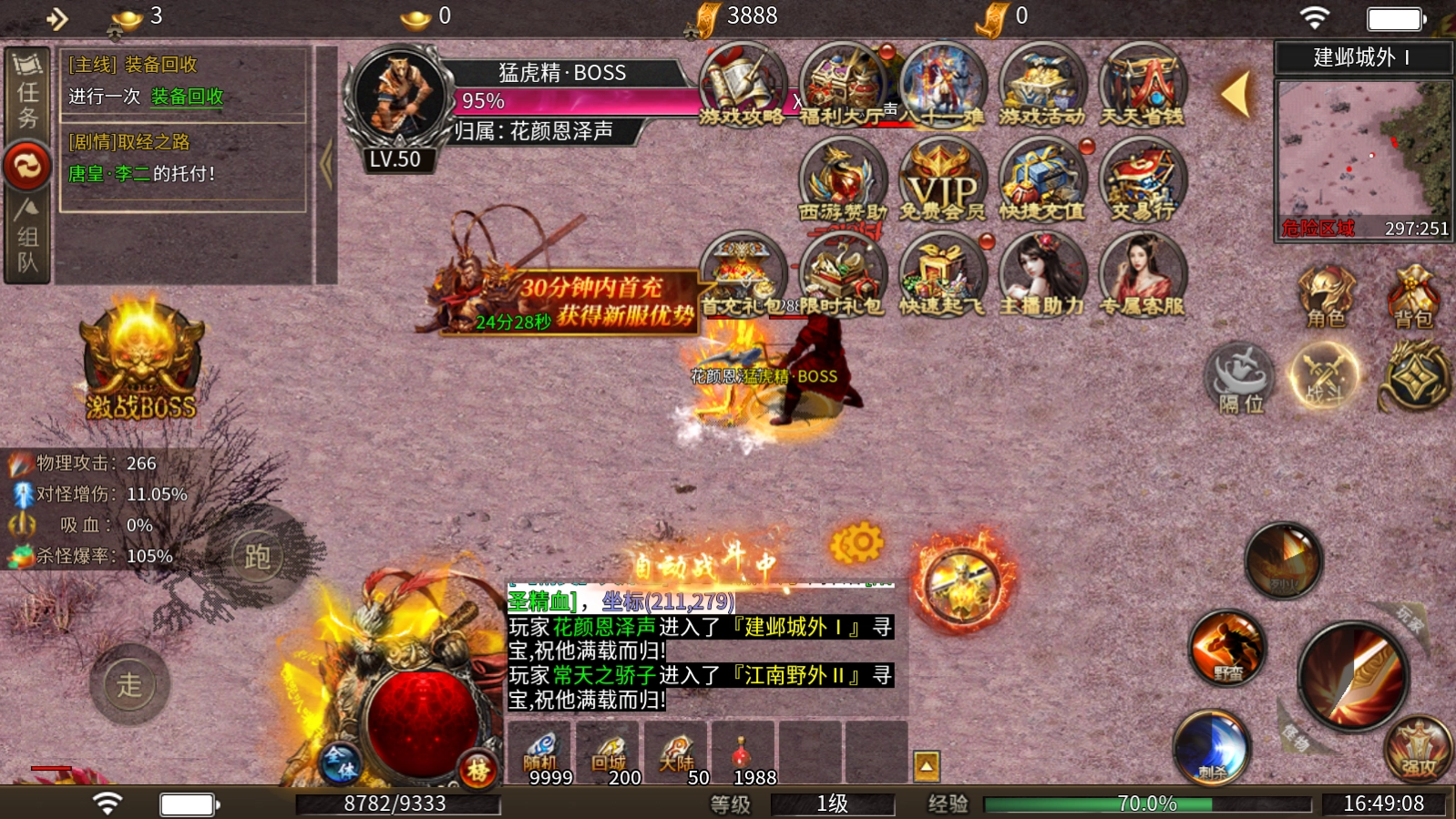 前期先挑战野外BOSS收集【八十一难】道具,以此获取装备来提升自身属性。