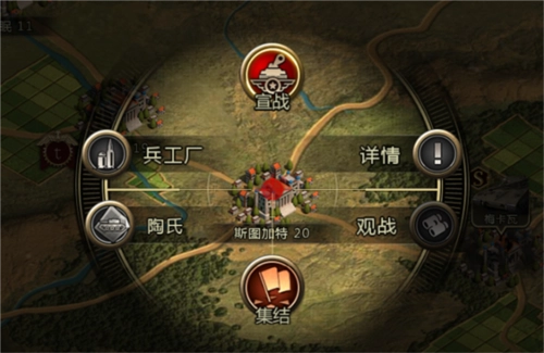 点击解锁的城池,就能看到上图所示的按钮。宣战、集结、观战这几个操作在城战中至关重要。通过宣战,便能对该城发起进攻并实现占领。需要注意的是,整个城战功能要在解放柏林之后才会开启。而集结,是将自身队伍召唤至这座城池。
