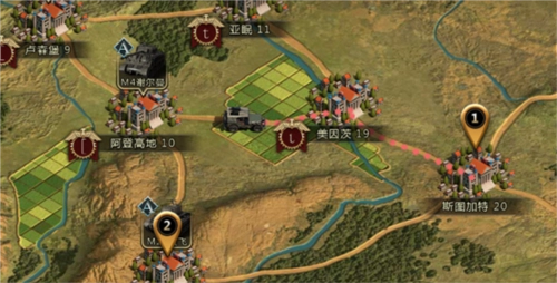 部队在移动过程中,会依据城池之间的道路行进。一旦遭遇敌方城池,便会自动对其发起攻击。敌方城池的名字将以红色显示。倘若部队前往目标城池的路径上存在敌对城池,那么部队无法径直抵达目标,而是会率先投入与敌对城池的战斗。不过,可借助突进、撤退等操作,实现向原本不可到达的城池移动。