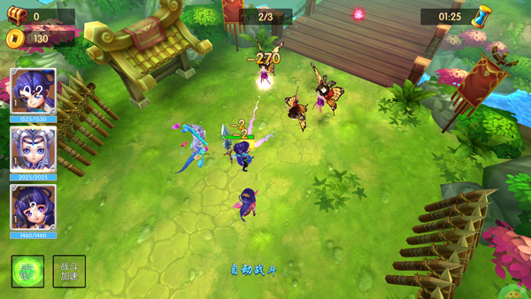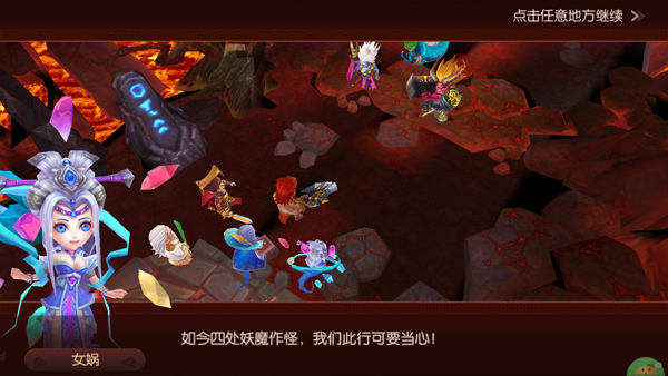 挑选挑战关卡并安排上阵角色,游戏运用经典回合制战斗系统。