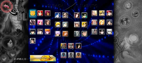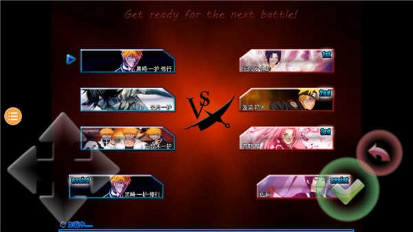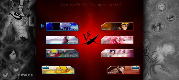 游戏里有不少死神和火影里的角色可供挑选,玩家能选自己的3个角色,还有电脑的三个角色。