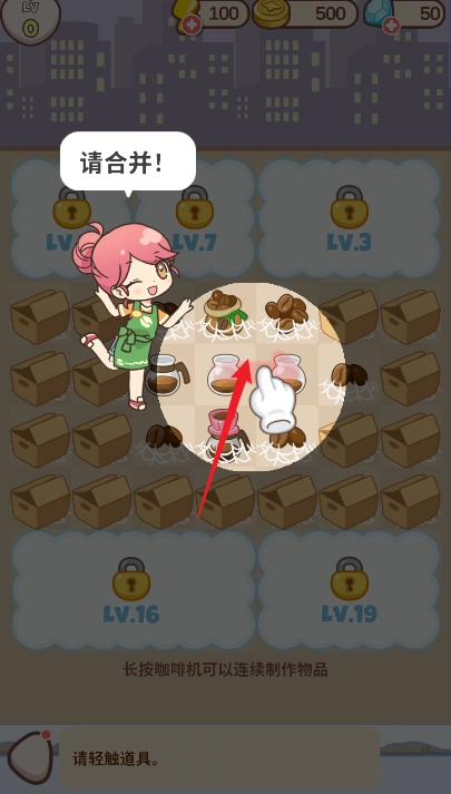根据引导合成咖啡,合理的去布局。