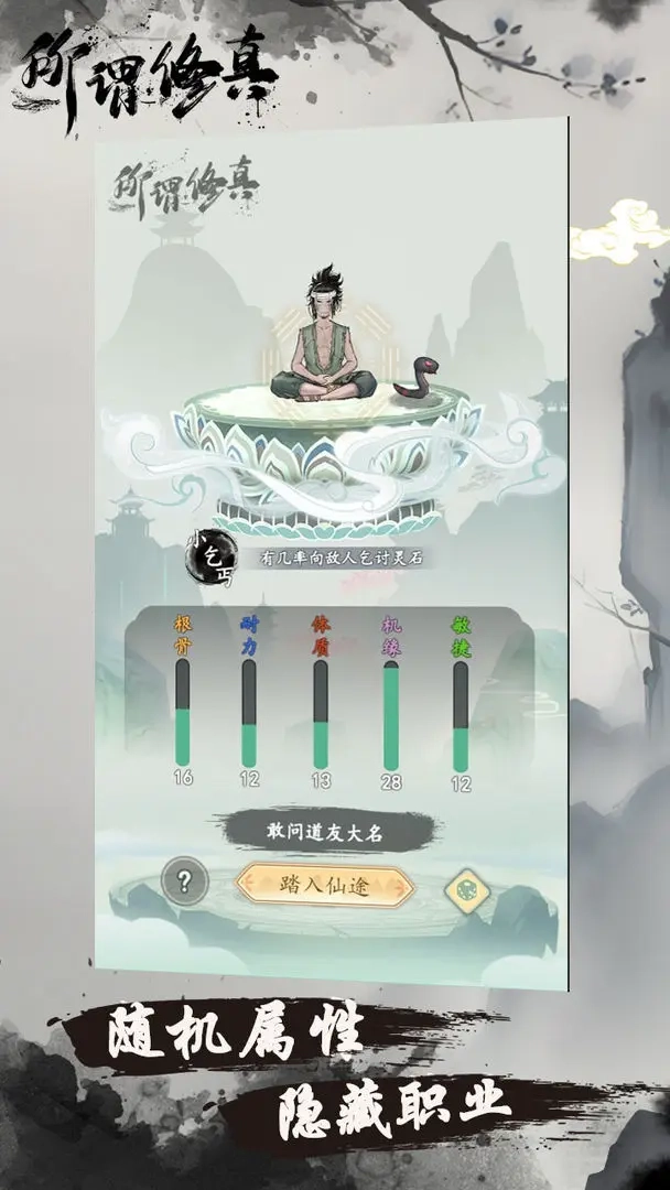 《所谓修真》是一款休闲风格的修仙模拟游戏,提供了丰富的角色选择,每个角色都具备独特的属性与成长潜力。玩家在游戏中化身为修仙者,通过持续挑战并击败怪物提升修为,还能收服各类强力仙宠助力战斗——仙宠不仅能让战胜敌人更轻松,还可加速修炼进程。值得一提的是,玩家每次战斗最多可同时派出两只仙宠,而不同仙宠之间还能通过繁衍培育出更强大的后代。