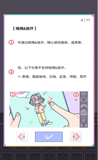 拖拽与放开:多数装扮项目能够借助拖拽与放开来完成装扮操作,不过像表情这类部分分类是不支持该操作的。