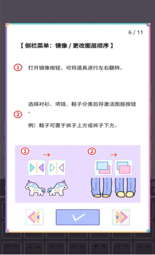 侧栏菜单:镜像按钮可实现道具翻转,图层按钮能调整道具层级。