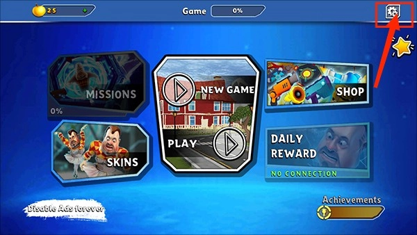 进入游戏界面后,点击右上角齿轮状设置键;