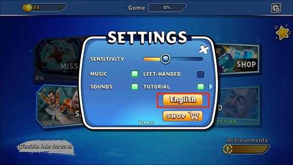 在“settings”界面里点击“English”选项。