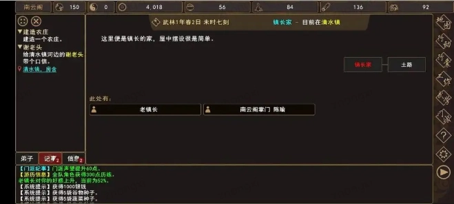 开局小贴士:出身背景里有个“天命之子”选项,推荐主角优先选这个,前期能派上用场——比如清水镇的山洞需要福源达到50才能触发,后期我还没玩到就先不说了。要是想走正派路线,不搞偷窃、不下毒的话,弟子的四维属性得选好点的,不然可能过不了衙门的任务。除了主角外,队伍里一定要带一个魅力拉满的角色,再配一个社交技巧高的。开局剧情模式结束后,记得把门派里能搜刮的都搜一遍,弟子和师傅身上的衣服也能扒下来卖钱,花园里还有果子可以拿,走之前别忘了和那几个活着的NPC对话。