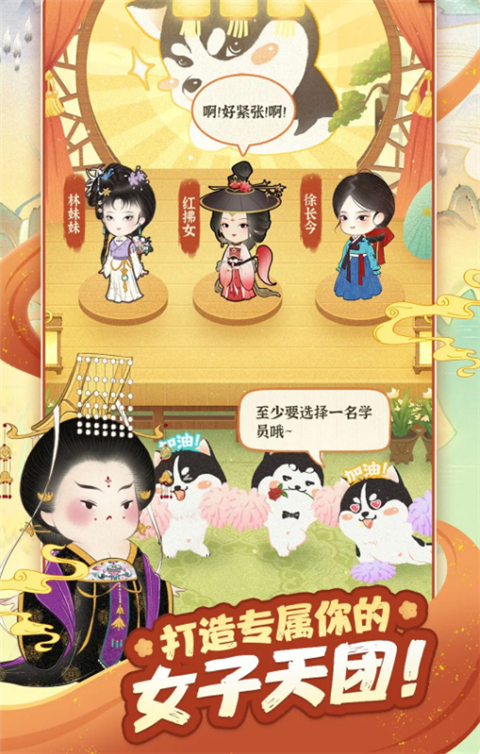 玩家能够招募涵盖四大美人、一代女帝等各类美人,从多方面提升她们的文、武、乐、舞、画、颜、戏等技能,打造属于我朝的顶尖女子团体,让四方为之惊艳。