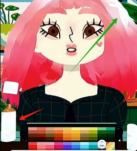 答:把化妆栏拉倒,选择第三个笔,接着选中你想要的颜色即可。