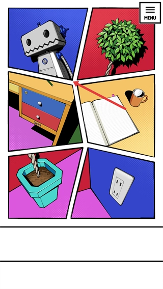 观察分镜场景里的元素(像机器人、盆栽这类),点击【机器人】对应的区域就能切换分镜,接着开展探索。