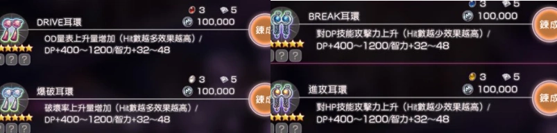 优先打造一个进攻耳环→重点制作DRIVE耳环→备用一个爆破耳环→Break耳环可作为可选目标:最终要造出6条dp+1200的耳环。