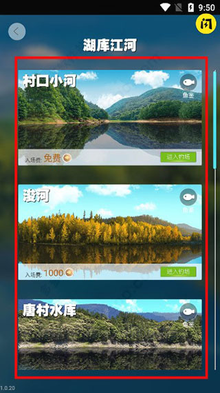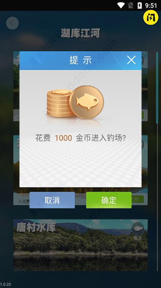 花费相应的金币进入钓场