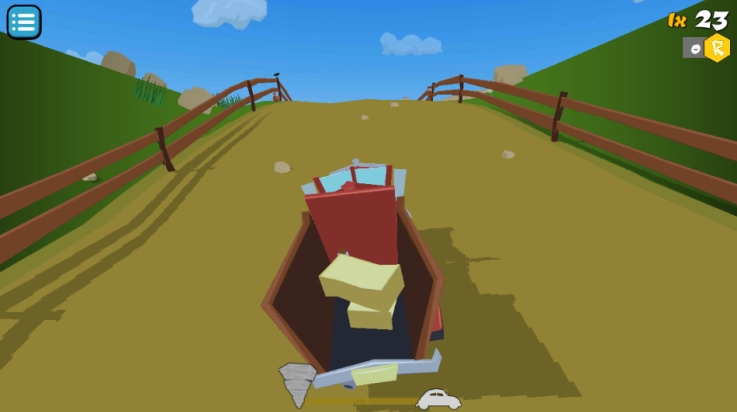 《乡下人大逃亡》是一款画风别具一格的动作冒险游戏,故事发生在龙卷风突然席卷的乡村地区。玩家将操控主角驾驶着满载家当的车辆,在多个不同场景中疯狂奔逃。游戏画面极具幽默感,角色与物体的造型抽象又可爱——比如圆滚滚的车身、夸张的龙卷风特效,再配上明快鲜艳的色彩,刚一进入游戏就能感受到轻松搞怪的氛围,让人忍不住想跟着主角一起在广阔的田野间尽情驰骋撒欢。