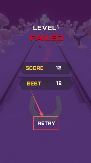 失败重试提示:当前出现LEVEL1 FAILED情况,得分(SCORE)为12,最佳成绩(BEST)也是12,请点击RETRY按钮重新发起挑战。