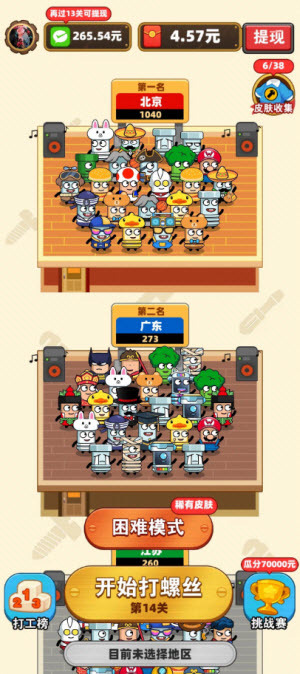 进厂打螺丝游戏是一款消除类的小游戏。游戏里,玩家得把一颗颗螺丝都卸下来,表面上看好像挺简单,但实际玩起来难度可不低。开局开得好特别关键,每一步都得仔细琢磨,不然越往后越难完成。要是挑战成功了,还能拿到奖励和红包呢。
