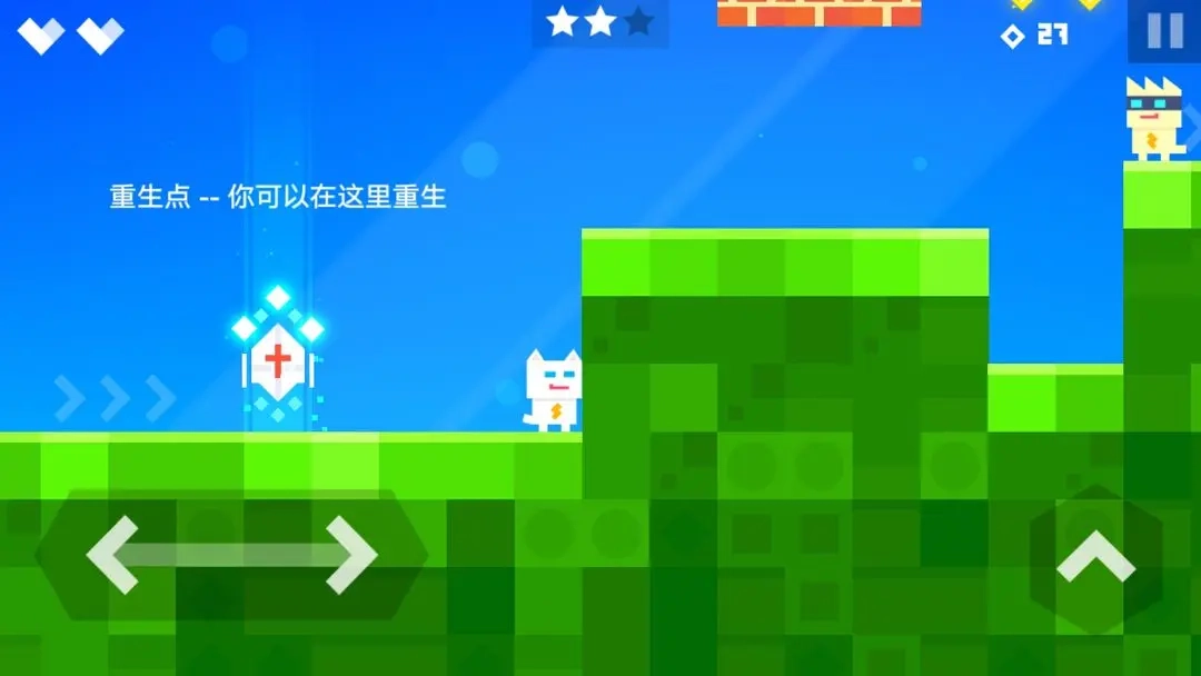 跳:控制小白起跳的是右下方的向上箭头,该箭头可与左右按键配合使用,具体分为向左跳和向右跳两种方式。
