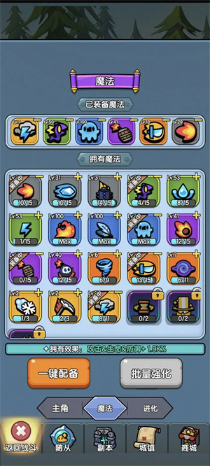随从系统总感觉有点“食之无味,弃之可惜”的味道,尤其是它们的攻击属性,实在没什么亮眼的表现——与其纠结攻击数值,不如优先选带实用特效的随从。不过到了游戏中期,常会遇到随从扛不住小怪攻击的情况,这时候我就会换一些能减对面攻击力、攻速或移速的随从过渡。 好在这游戏各属性的成长曲线比较均衡,等推图到地狱7左右时,随从的防御成长就会反超对面怪物的攻击成长了,之后基本都能满血通关;但打BOSS时容易出现输出不够导致超时的问题,这时候就得带加BOSS伤害的随从。我自己常用的是加BOSS伤害、冷却缩减、连击和技能引爆的组合,具体效果没仔细测过,毕竟没有伤害统计功能,懒得去算具体数值。