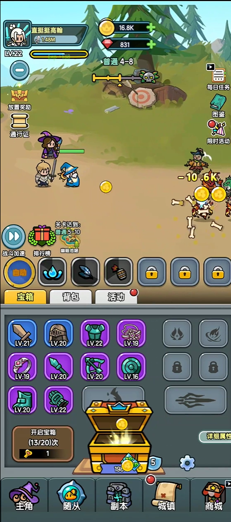 这款游戏广告数量不多,每日资源获取量是固定的,氪金能带来实实在在的提升效果,而且每天凌晨12点会刷新内容,通常花十分钟左右就能完成一天里的大部分任务,之后就可以开启挂机模式了。