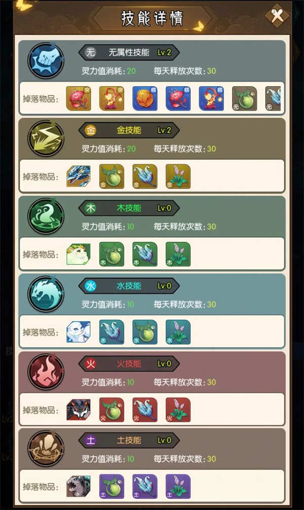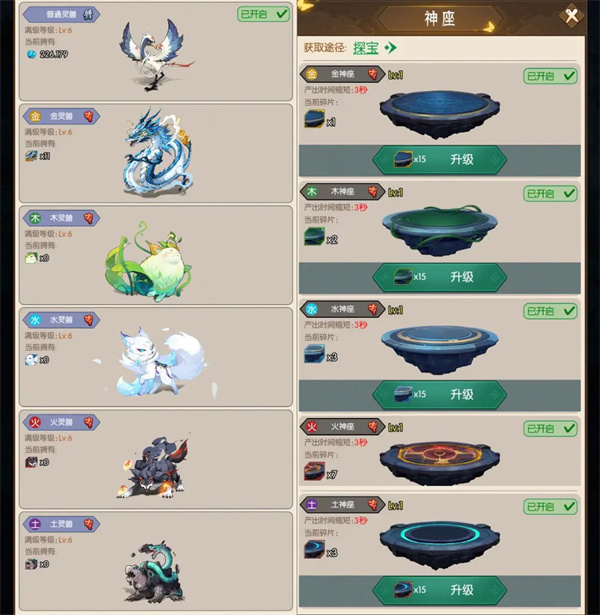 游戏里包含种类丰富的灵兽,像普通灵兽以及对应金木水火土五行属性的灵兽,所有这些灵兽都可以持续提升自身等级。