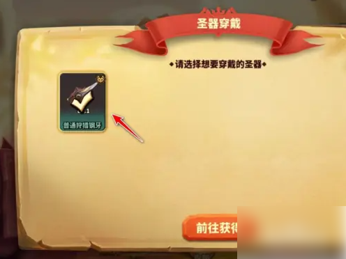 在圣器详细界面,点击下方的穿戴按钮即可。