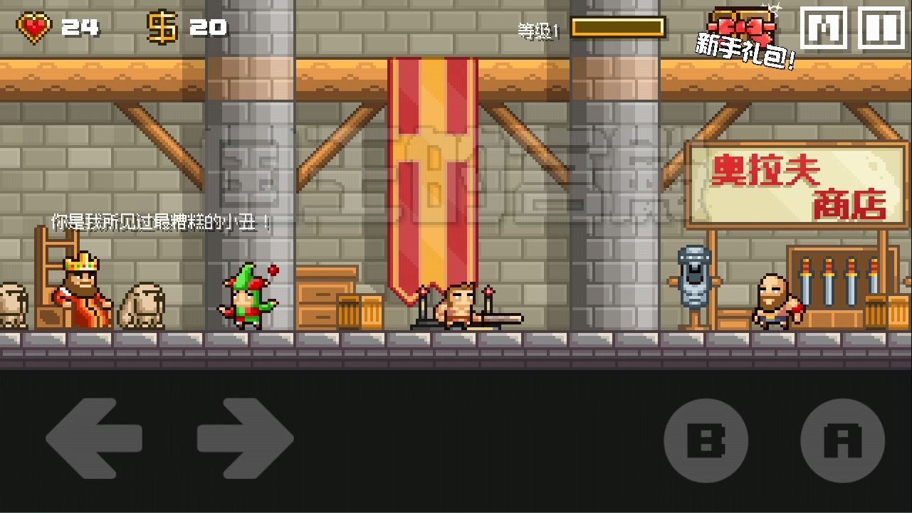 这款游戏的操作难度并不高。在游戏屏幕的左下方,设有两个方向键,用来操控角色向左或向右移动。其中,B键为攻击按键,A键则是起跳按键,若长按A键,角色会做出下跳动作。游玩过程中,务必留意别被怪物伤害到。