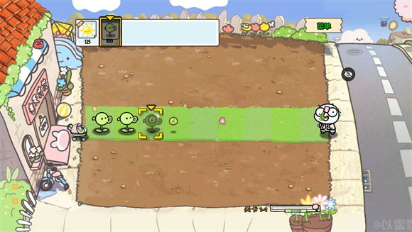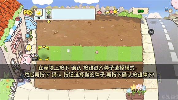 2、点击植物,再点击草坪即可把植物种植到草坪上