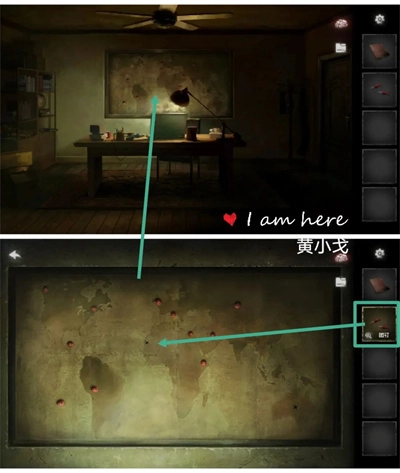14、点击墙上的地图,放入图钉