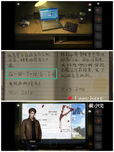 8、(书房场景)点击电脑设备,依据日记本里的提示线索,输入密码“GWYNETH”,即可获取新的线索信息