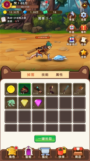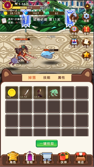 2、角色击败怪物后有概率掉落装备,装备该装备后可提升角色的战斗力