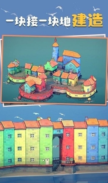 1、打造专属于你的小镇吧,这里的每一处都能由你自由搭建,玩家们可以借助错落有致的叠放方式,创造出独一无二的奇妙景观!
