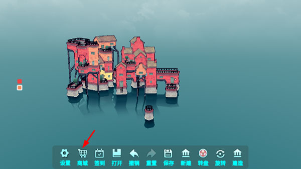 2、点击右上角的齿轮图标进入设置界面,选择新建选项后,玩家就能在水面区域建造房屋了。
