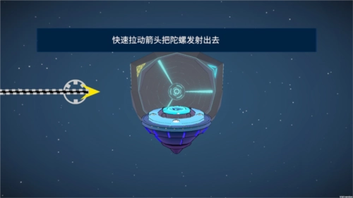 4、进入游戏如图,快速拉动箭头把陀螺发射出去。