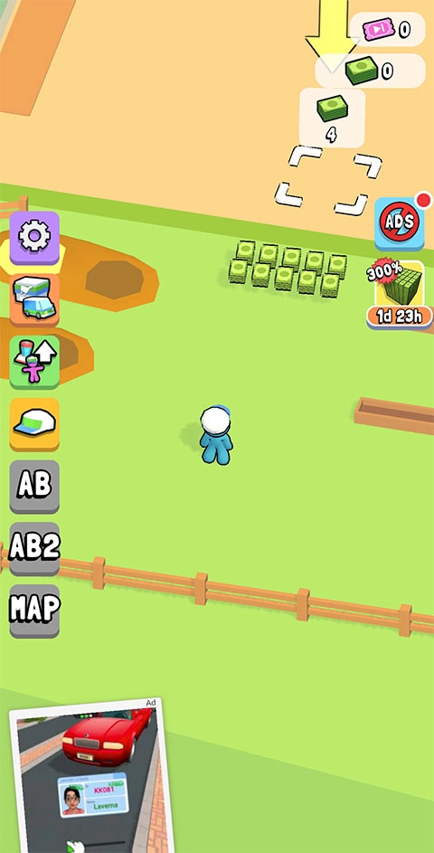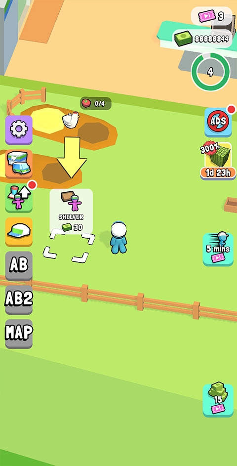 1. 进入游戏后,通过滑动屏幕操控小蓝人移动至方框处,就能用金币解锁收银台。