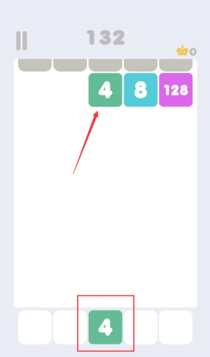 3、选中绿色4方块,与上方相同数字合并消除。