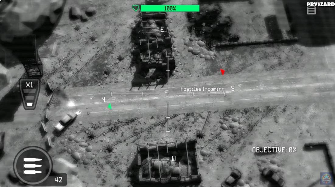 1、精准还原AC-130炮艇与无人机的操作流程,支持手动校准与战术侦察功能。