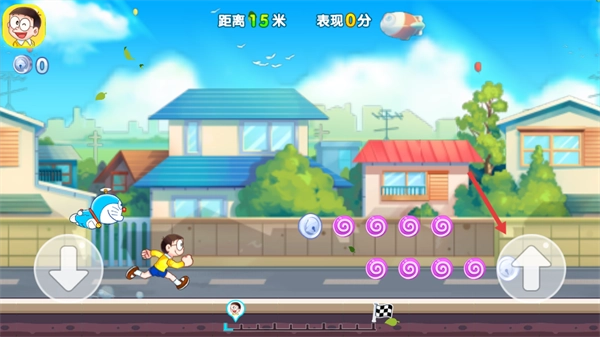 1. 这款游戏最具吸引力的点,在于对哆啦A梦经典道具进行了富有创意的运用,这些道具被巧妙地设定为跑酷玩法的核心机制。