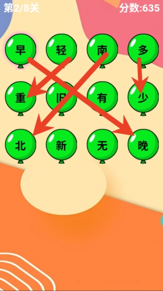 进入游戏后,系统会呈现出若干悬浮着的彩色气球,每个气球里都装有一个中文词语。